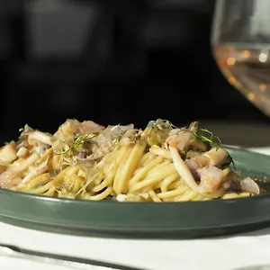 Gli ospiti sono invitati al ristorante Hotel Belvedere a godere del cibo squisito.